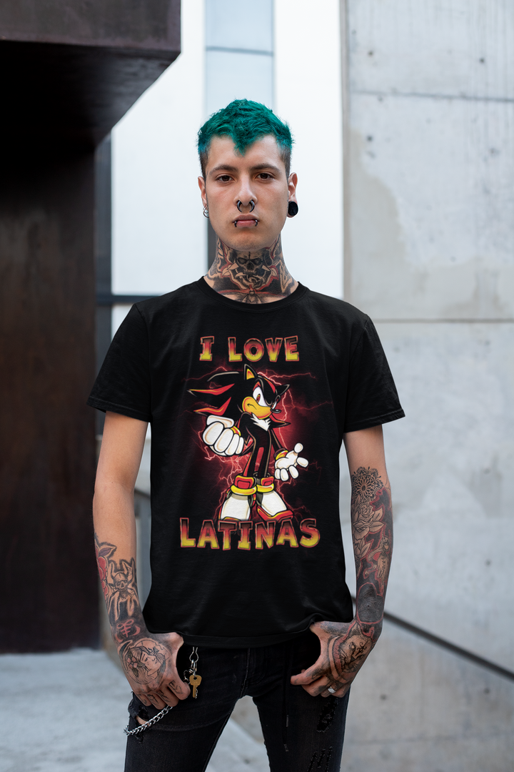 Edgy, mysterious, and apparently a man of taste, Shadow the Hedgehog isn’t afraid to declare his undying devotion to women south of the border. With bold lettering, fiery energy, and an unshakable confidence, this tee is for those who appreciate speed, chaos, and Latin flare.
