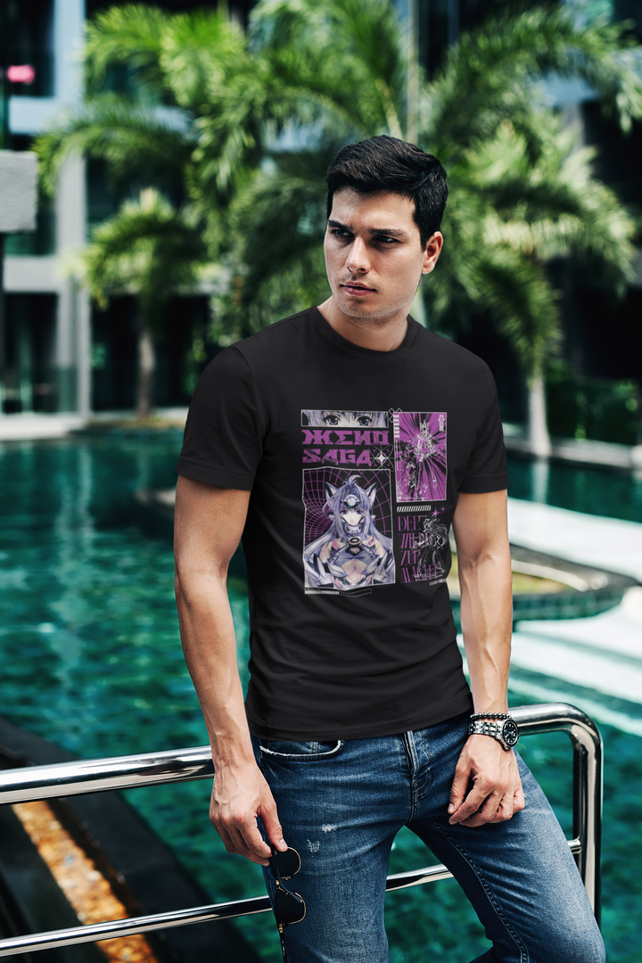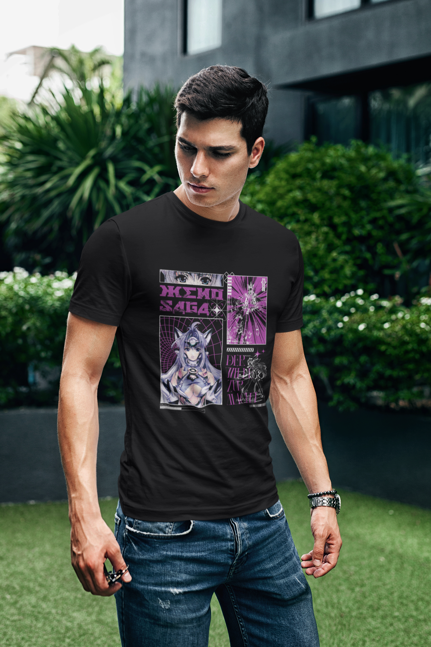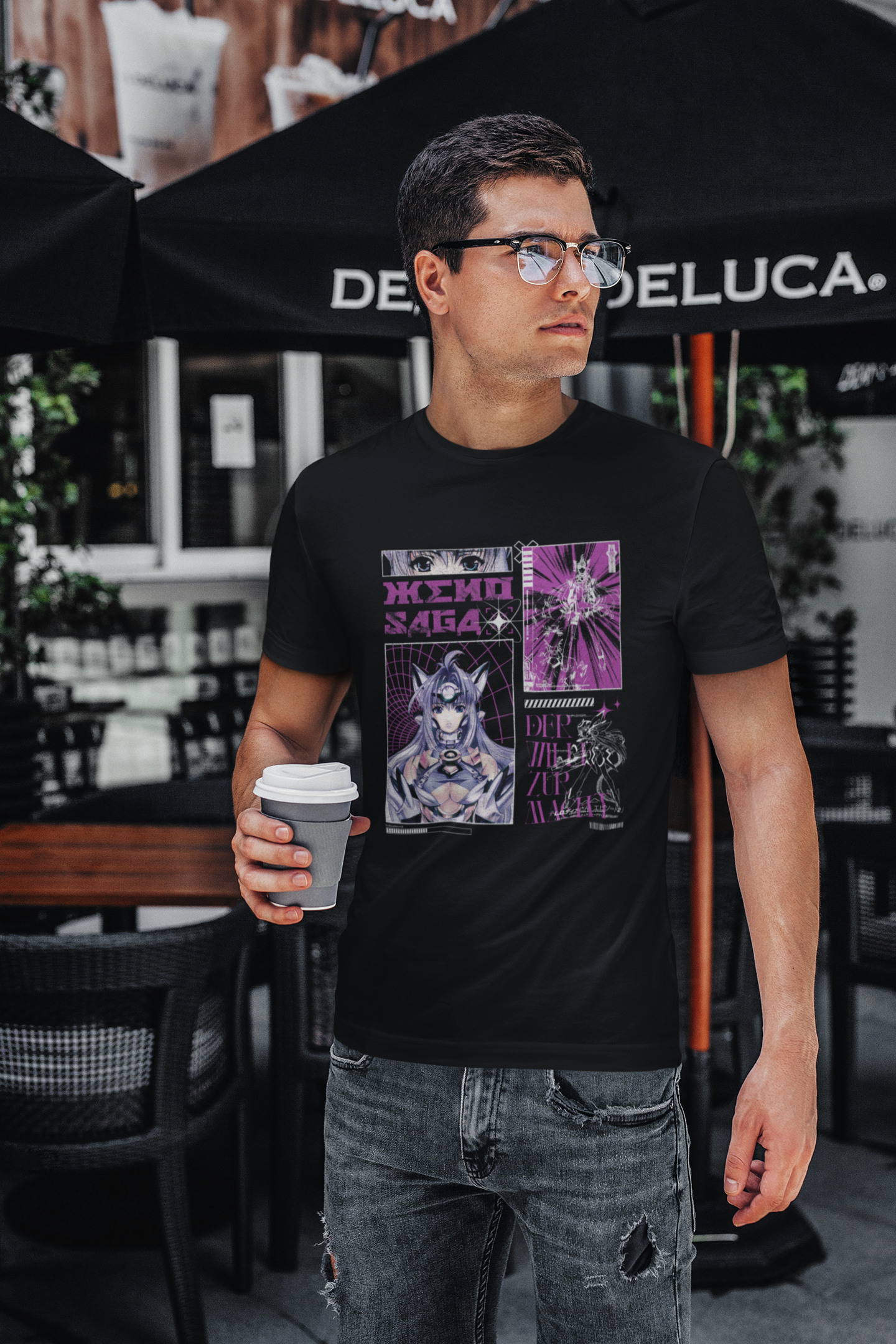 A brutalist vision of deep space, AI consciousness, and cosmic destiny—this design brings the legendary Xenosaga aesthetic to life. Featuring a glitchy, cyber-gothic composition with KOS-MOS at its core, this tee is perfect for those who embrace the void of the unknown.