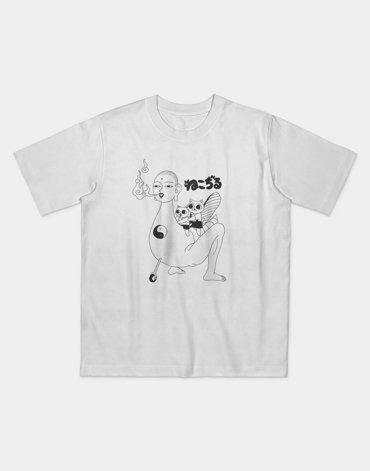 Celebrate the quirky charm of Nekojiru with this eye-catching Two Cats Riding Buddha T-Shirt. Featuring the iconic and surreal art style of the beloved Nekojiru series, this shirt showcases two mischievous cats riding atop Buddha in a playful, thought-provoking design. Perfect for fans of indie anime, surreal art, and Japanese pop culture, this shirt is made from premium, soft fabric for ultimate comfort.