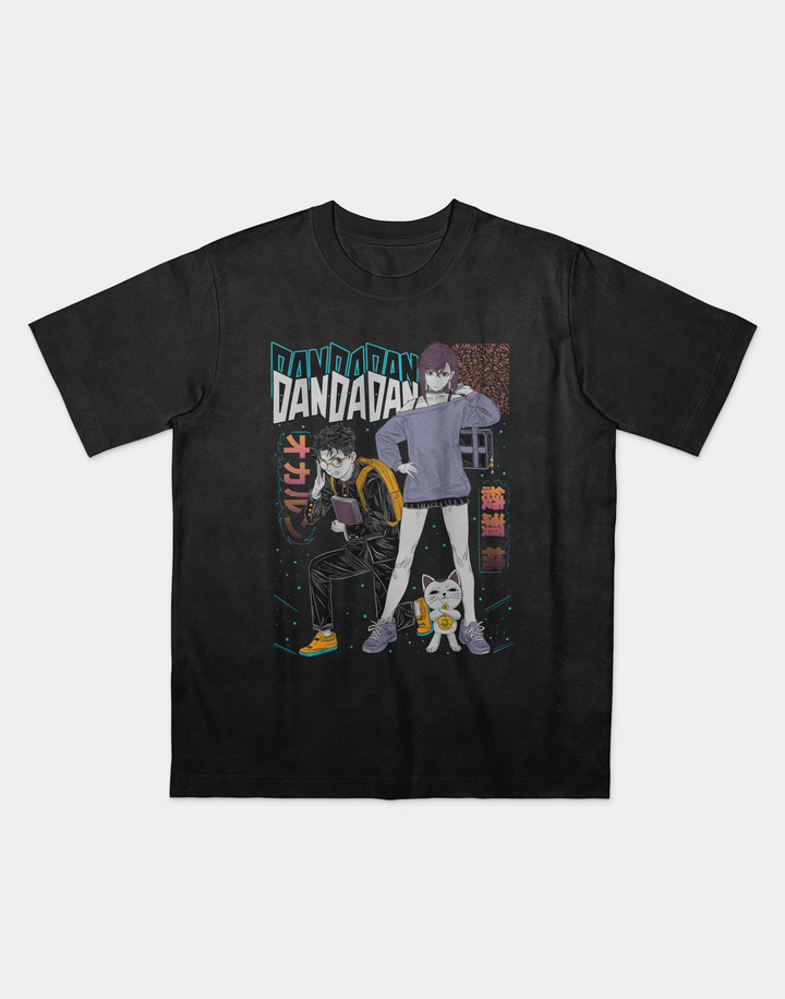Mixing urban streetwear with supernatural vibes, this Dandadan “Deadly Trio” T-Shirt features Okarun and Momo rocking modern fits alongside the iconic Lucky Cat. With bold colors, retro manga text, and a splash of neon accents, this design perfectly blends anime nostalgia with contemporary street style. Whether you’re a fan of supernatural battles or just love edgy anime fashion, this tee is a must-have.