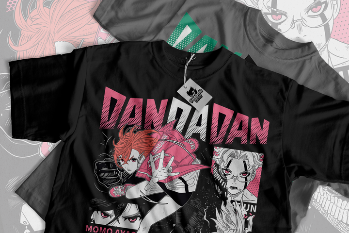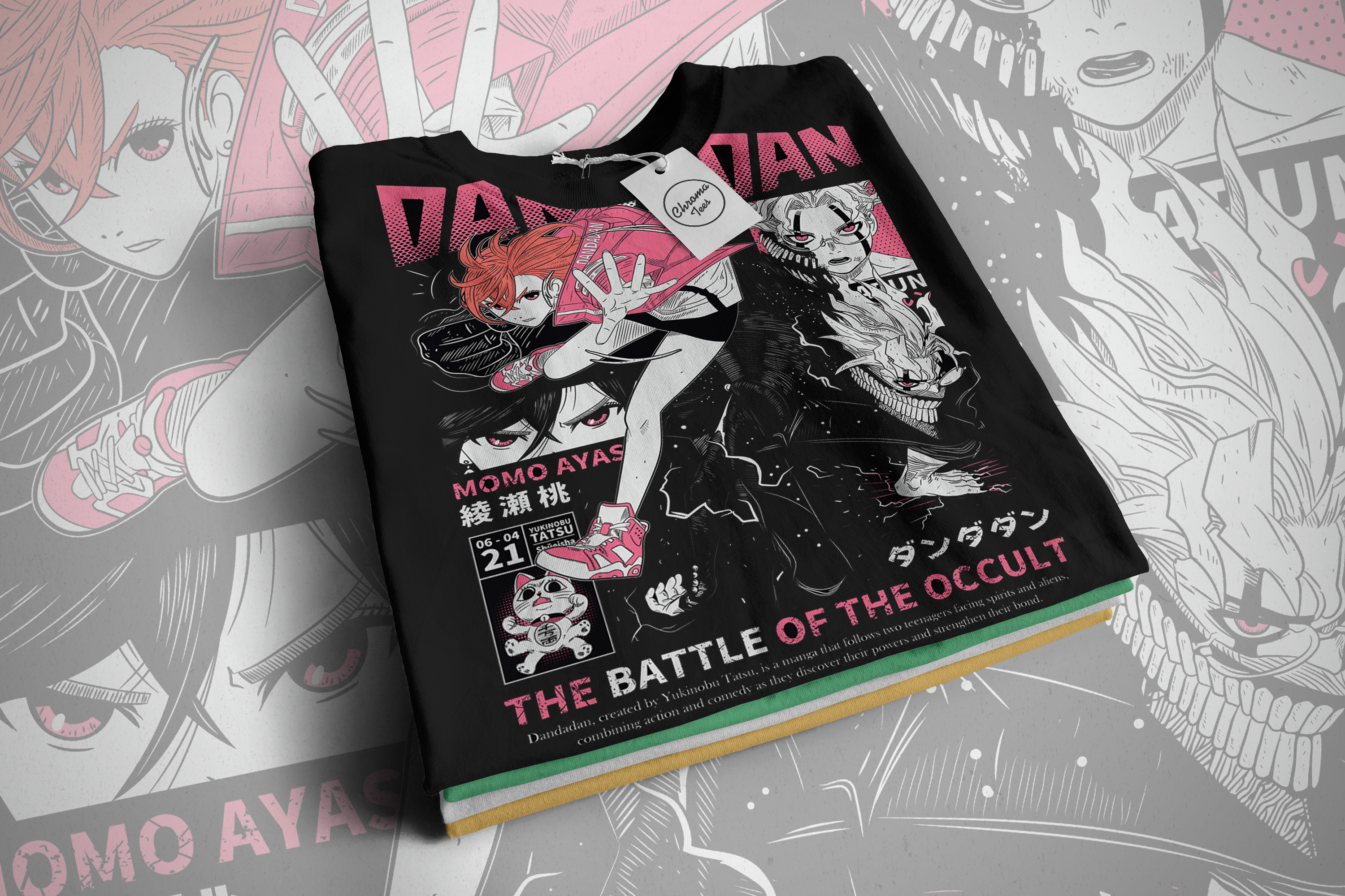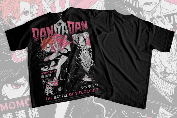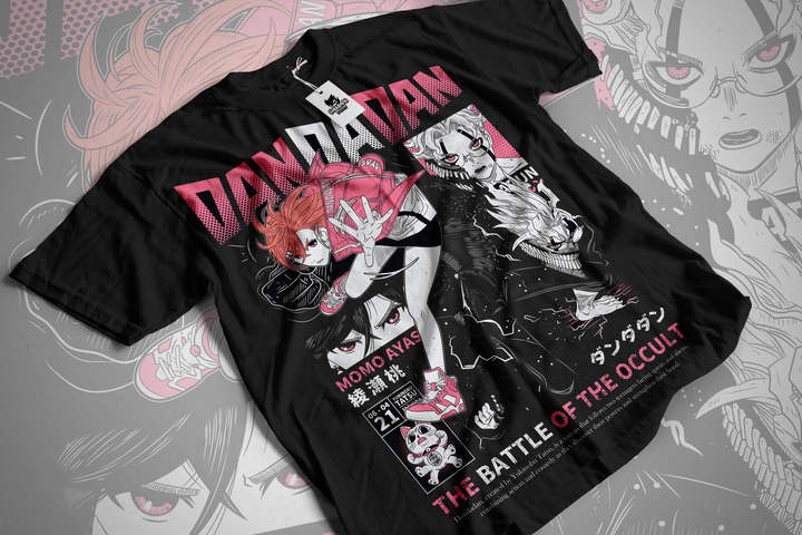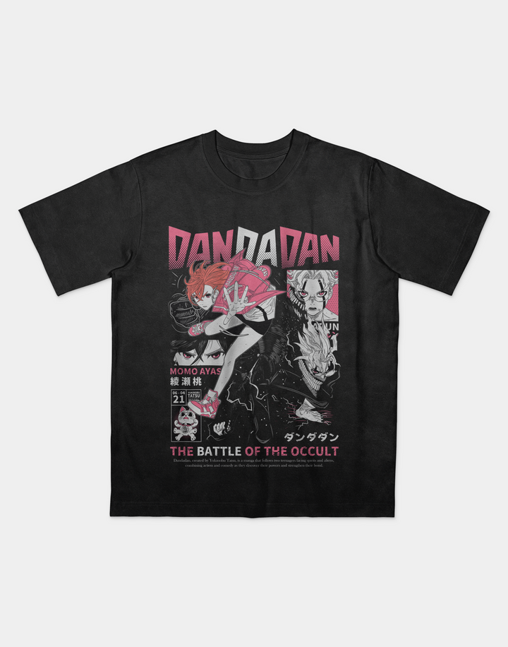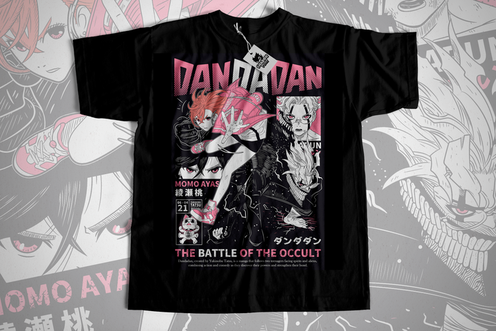 Step into the supernatural chaos of Dandadan with this electrifying tee, featuring Momo Ayase and a lineup of intense occult and alien threats. Designed in a sleek manga panel style with striking pink and black tones, this shirt captures the wild energy of Yukinobu Tatsu’s hit series.