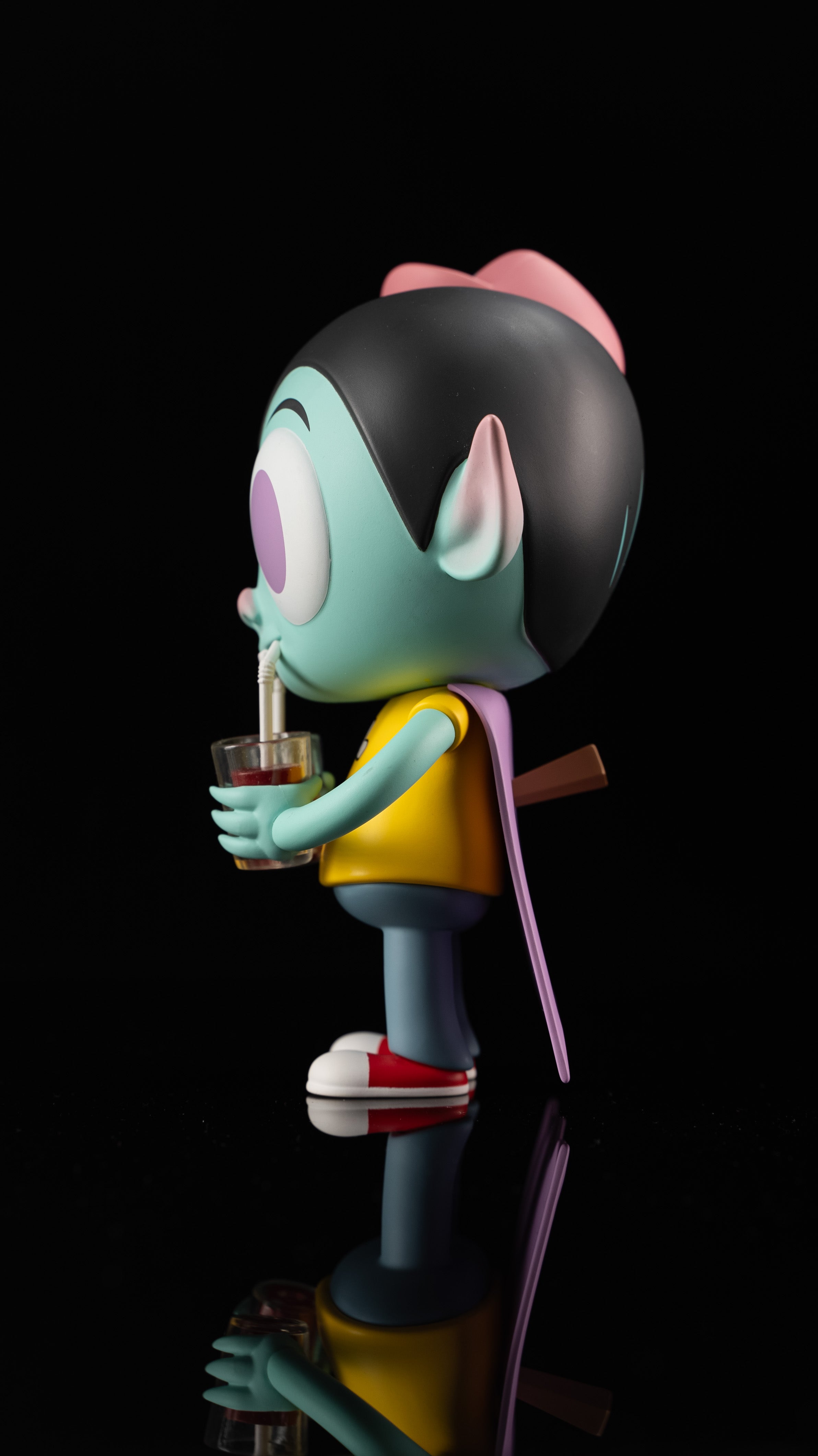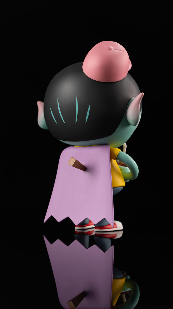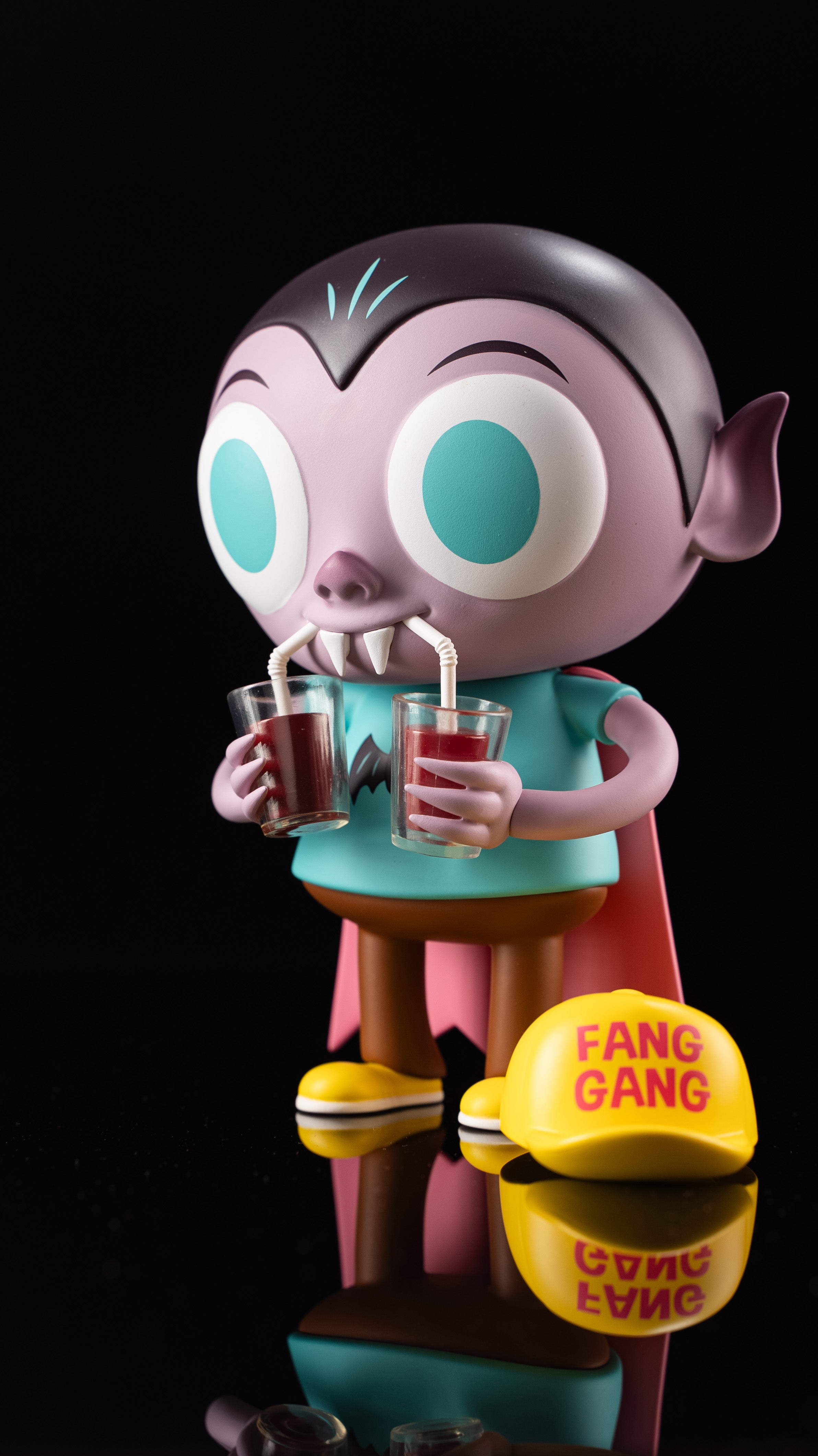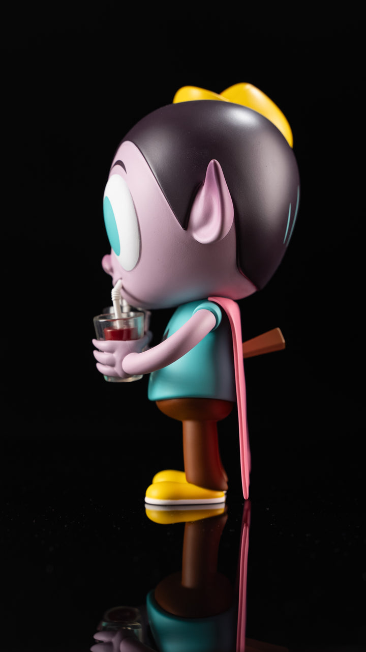 Kid Kuagula features a stake in his back, double blood drinks, and a magnetic hat.