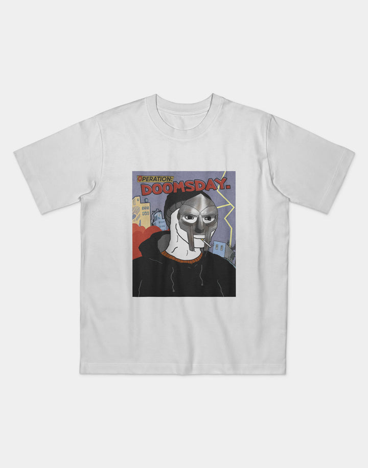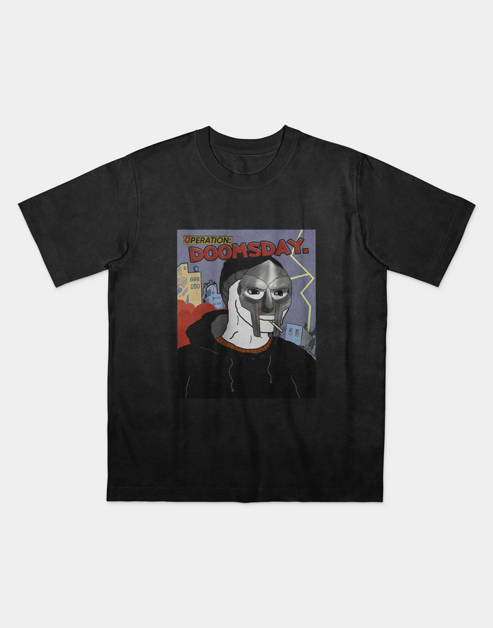 Two legends collide in this Operation: Doomsday-inspired mashup of hip-hop’s masked villain and the internet’s most existential meme. This tee blends MF DOOM’s classic album aesthetic with a melancholic twist that speaks to every doomscrolling soul. A must-have for rap heads, meme lords, and those who live in the shadows.