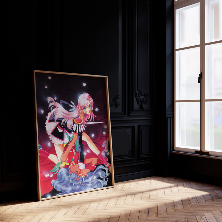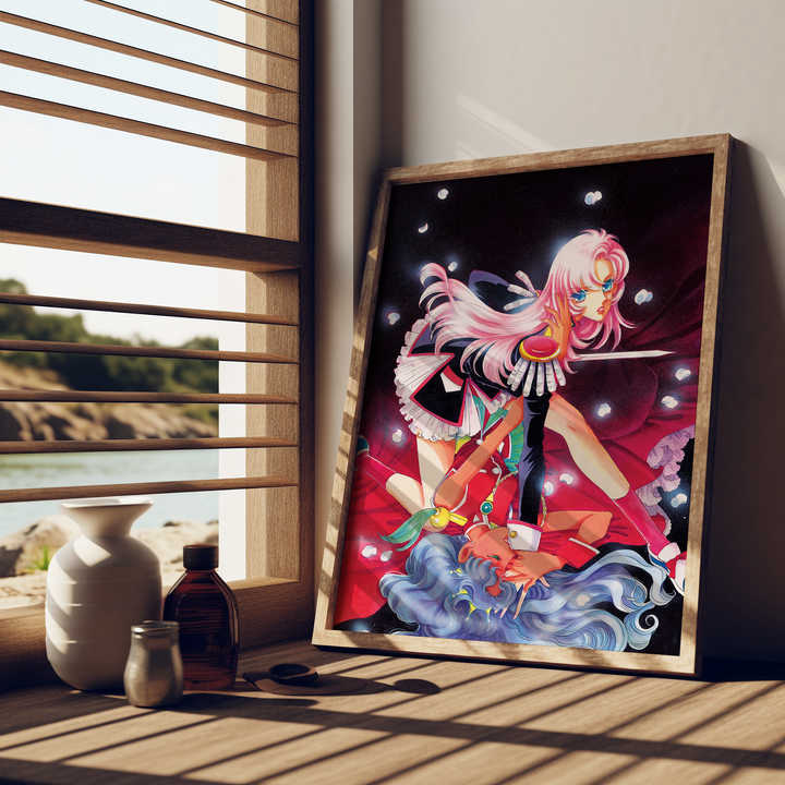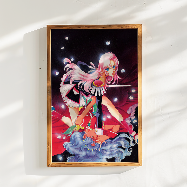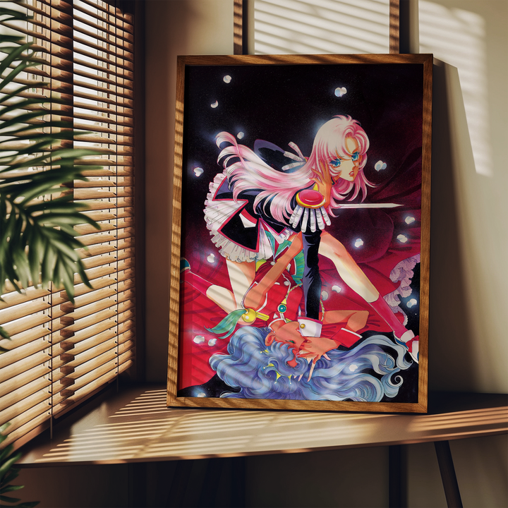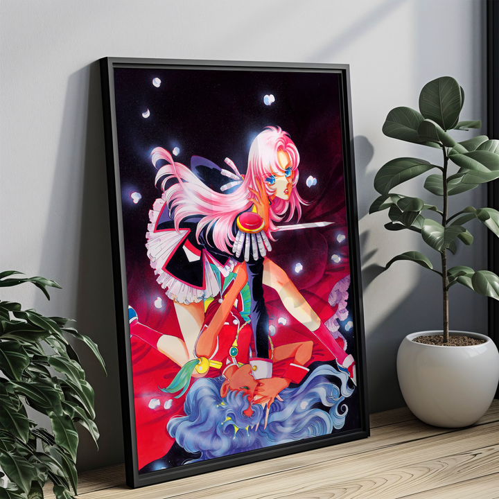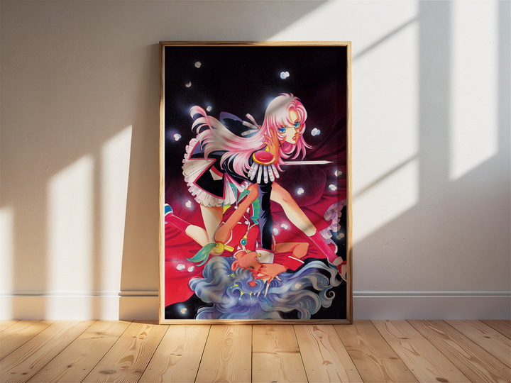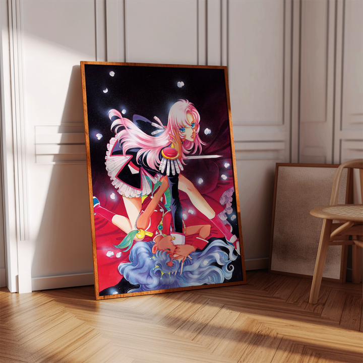 Step into the surreal, romantic, and revolutionary world of Revolutionary Girl Utena with this stunning poster, featuring Utena and Anthy in an iconic, dynamic composition. Blending dreamlike visuals, symbolic imagery, and a bold sense of drama, this print captures the duelist spirit and deeper themes of the series in a breathtaking display.