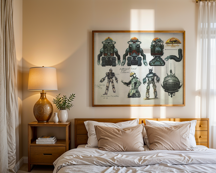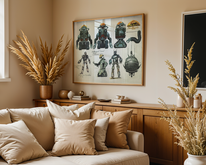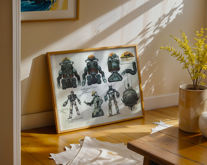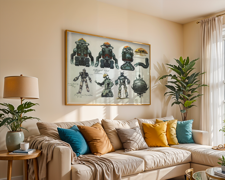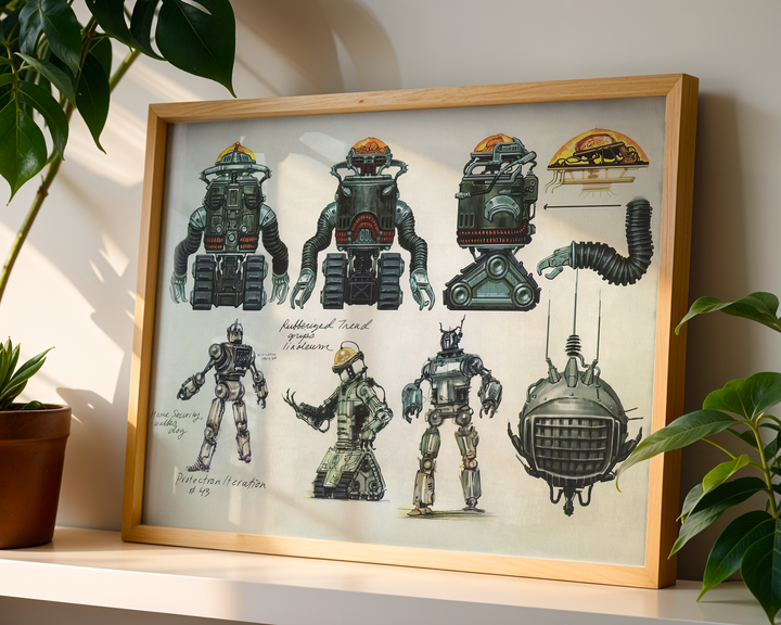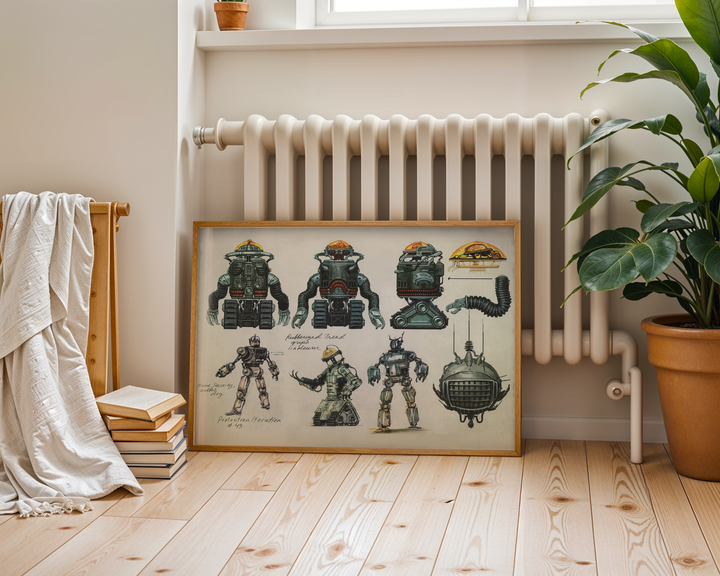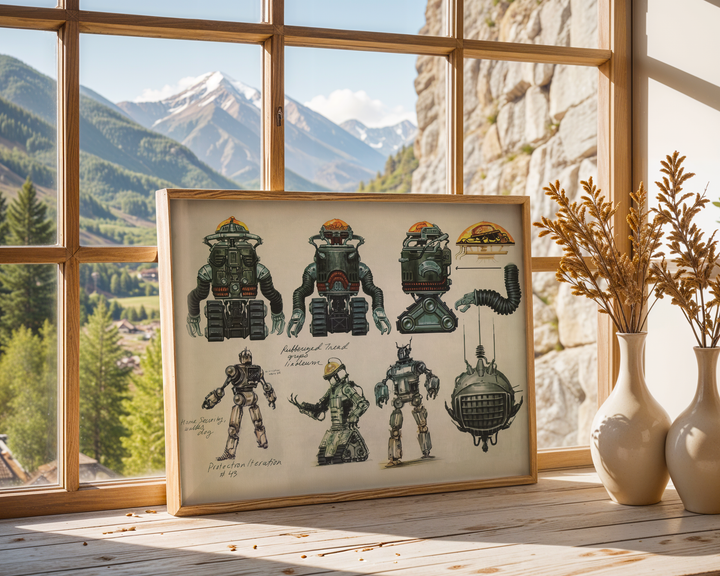 Dive into the world of pre-war robotics and mechanized defense with this Fallout Robotics Blueprint Poster, showcasing detailed schematics of Sentry Bots, Protectrons, and Mister Gutsy units straight from the laboratories of Vault-Tec and RobCo Industries. This vintage-inspired print is the ultimate tech document for wasteland engineers and retro-futurism enthusiasts.
