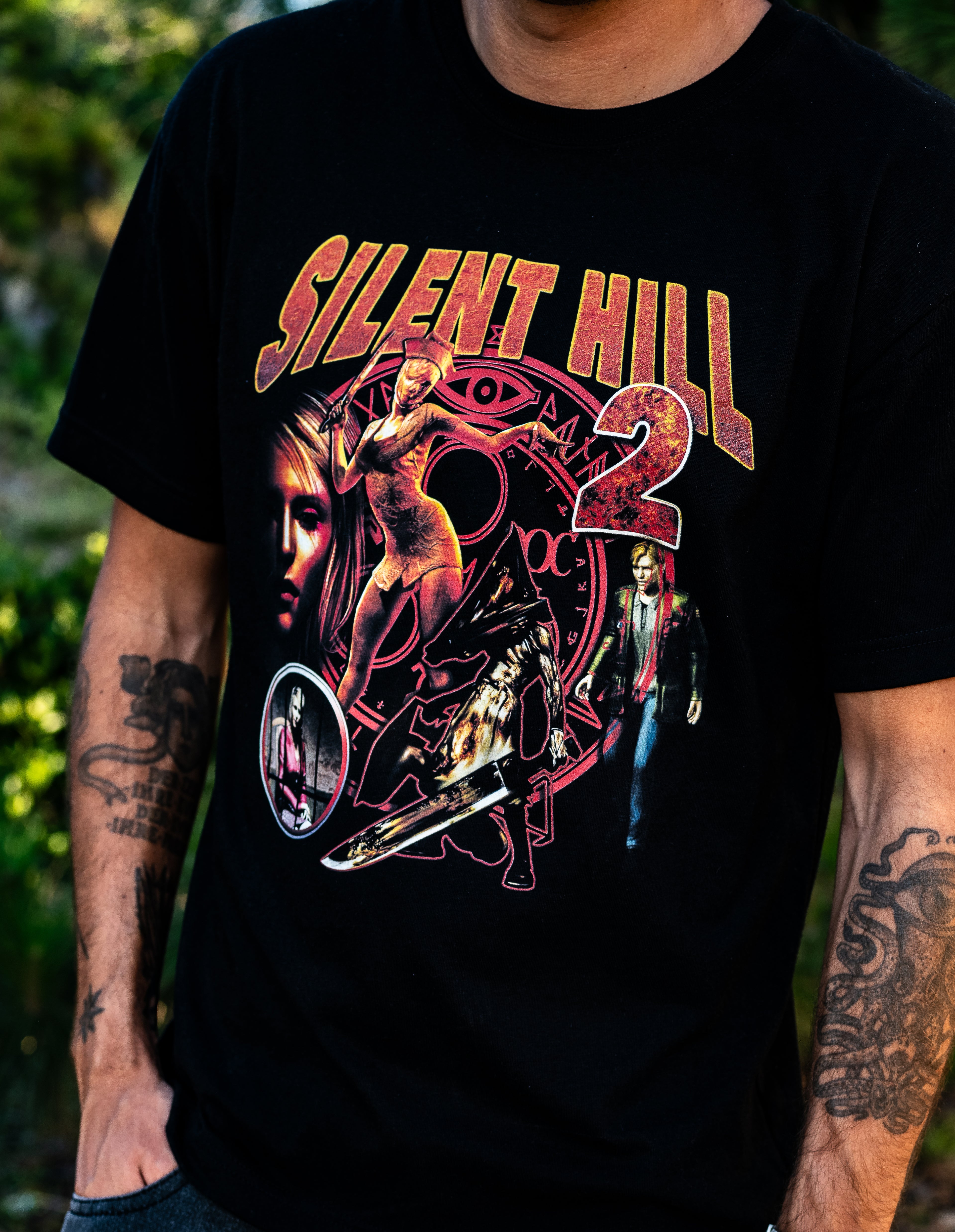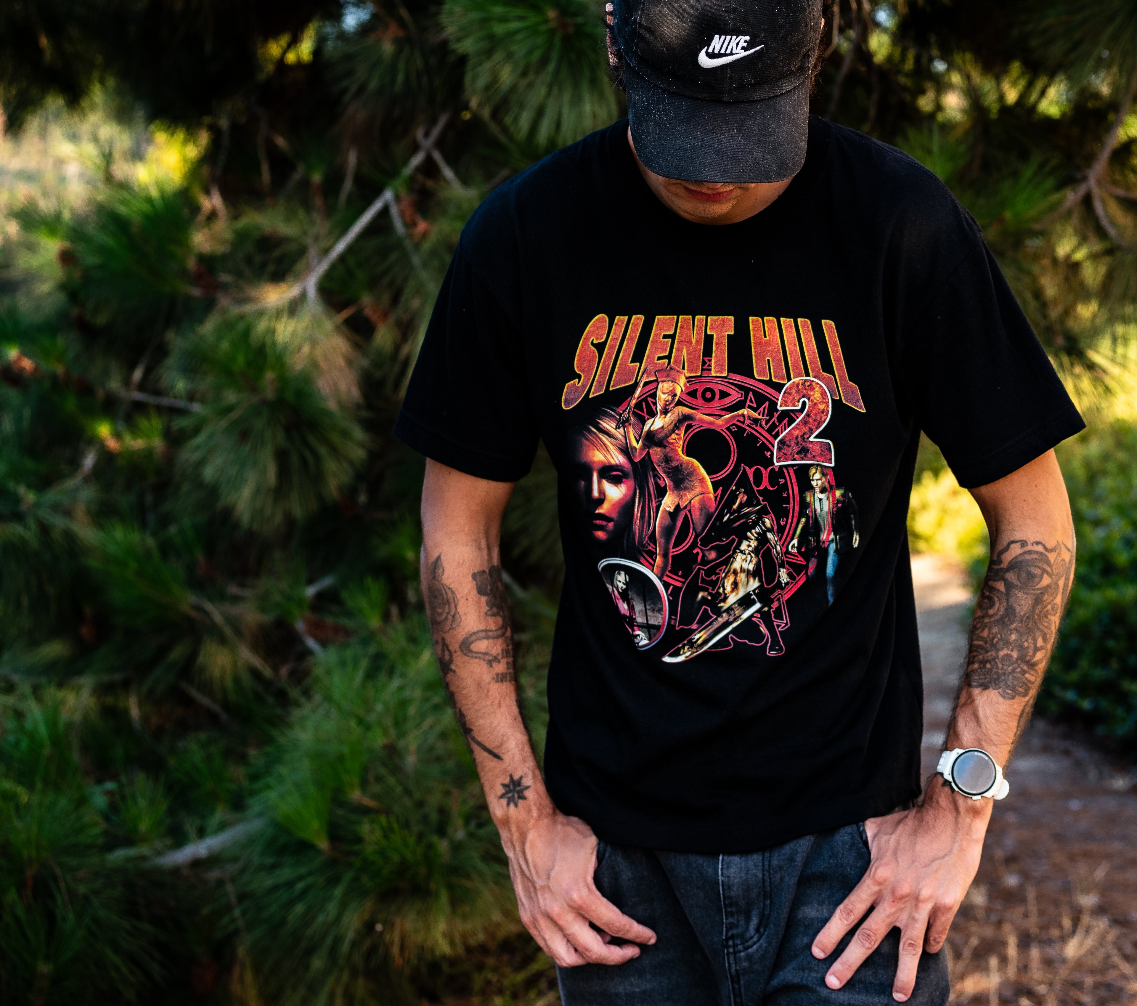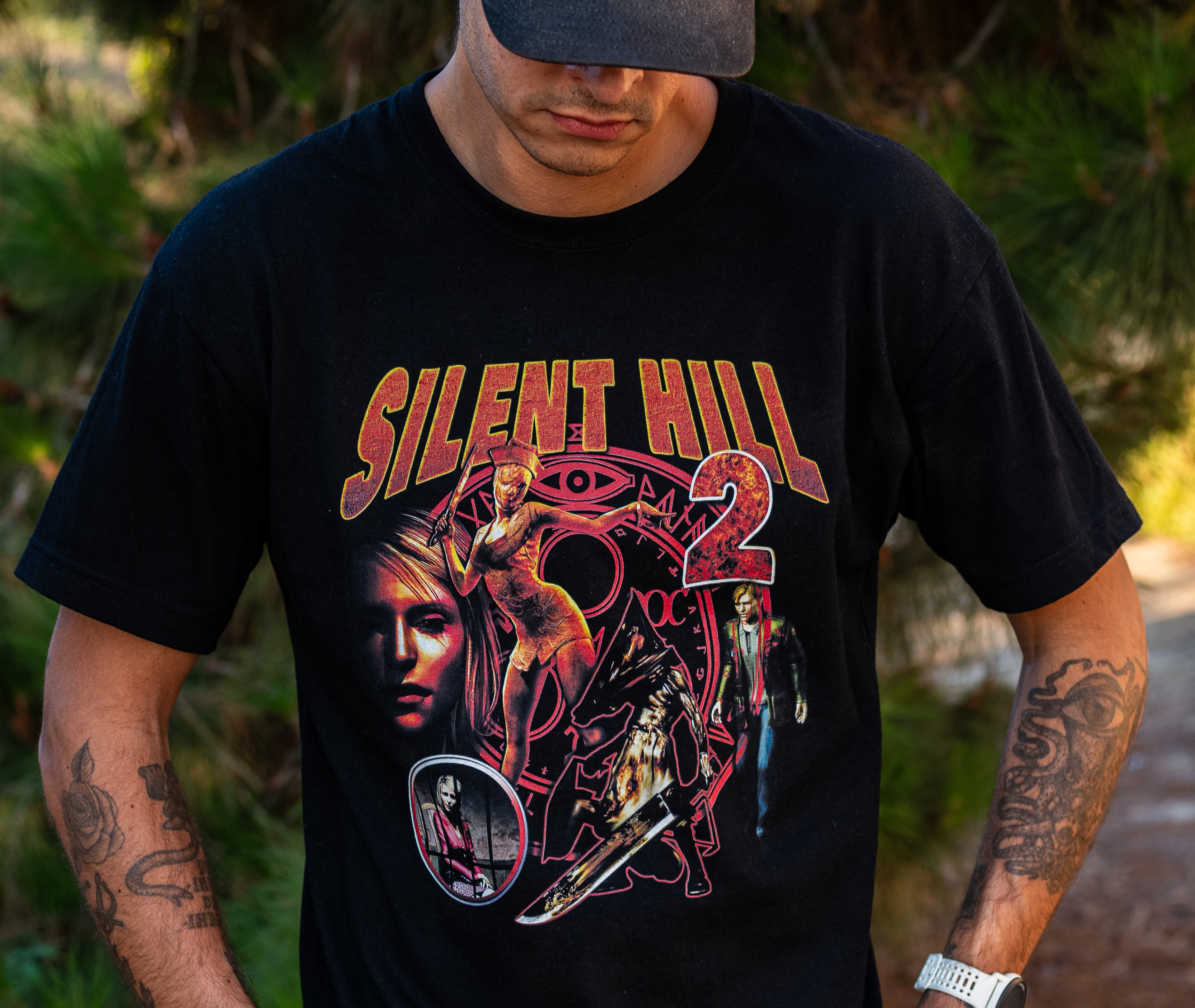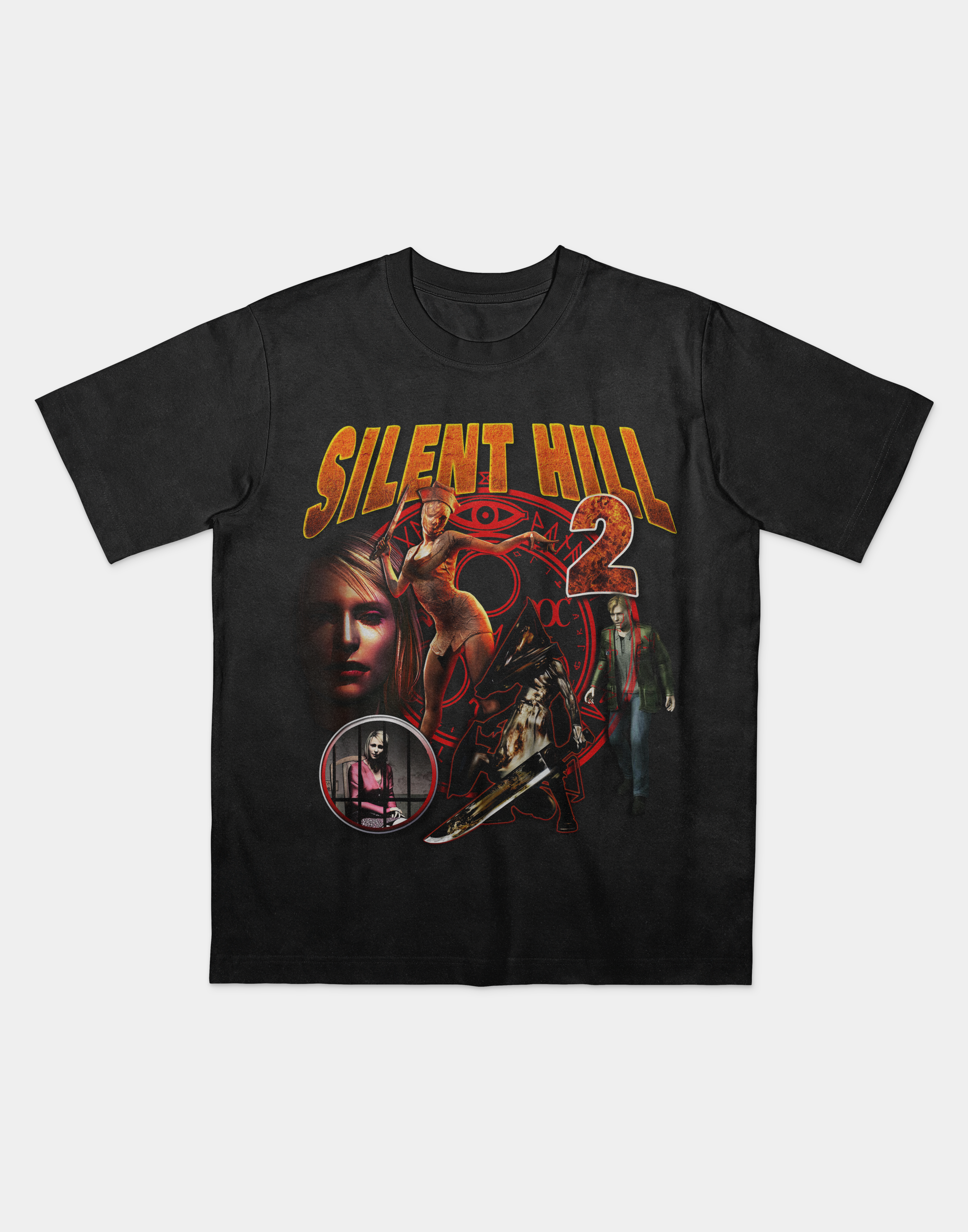 Step into the fog with this eerie tribute to one of the most haunting psychological horror games of all time. Featuring iconic imagery of Pyramid Head, Maria, and the dreaded nurses, this design captures the unsettling beauty of Silent Hill’s nightmare.